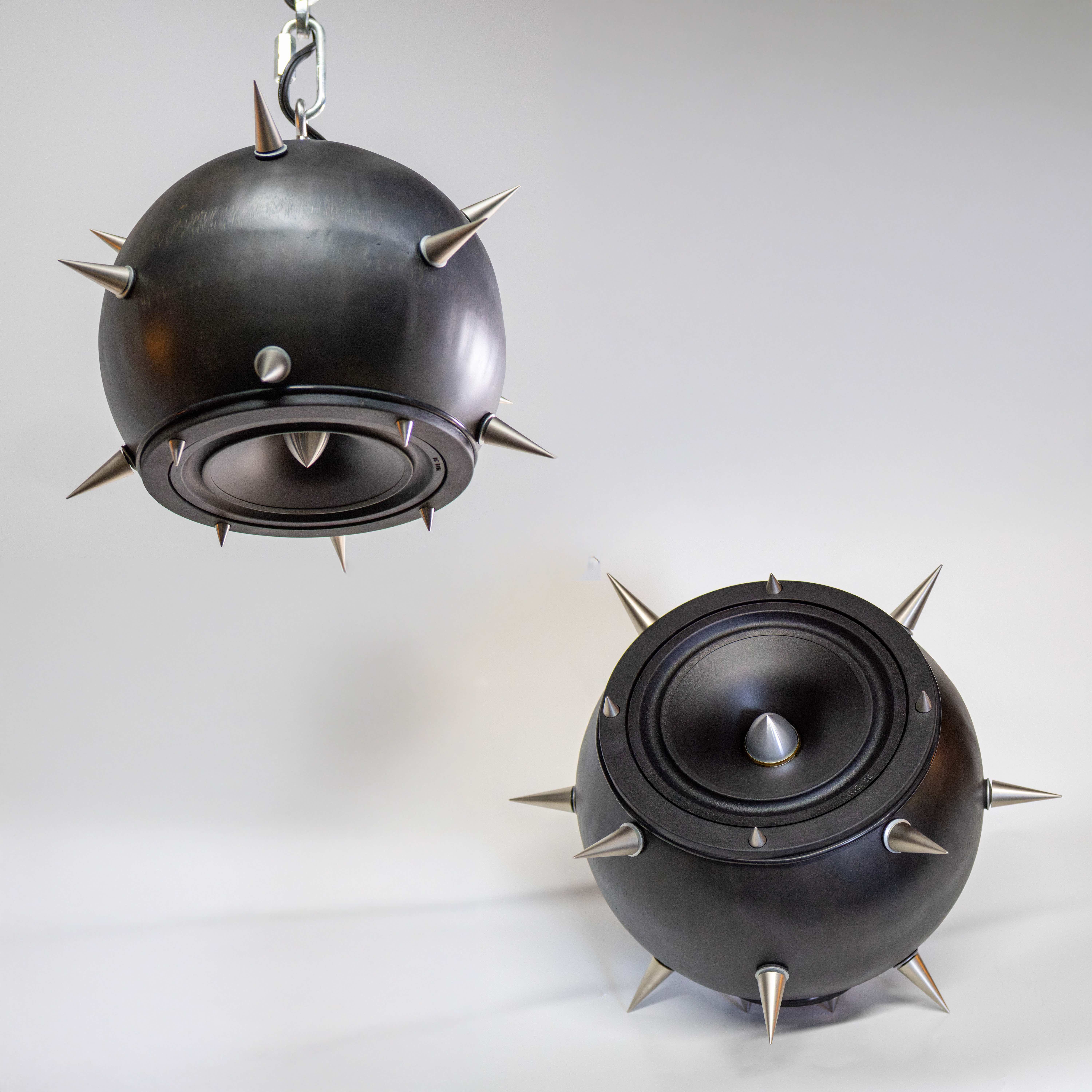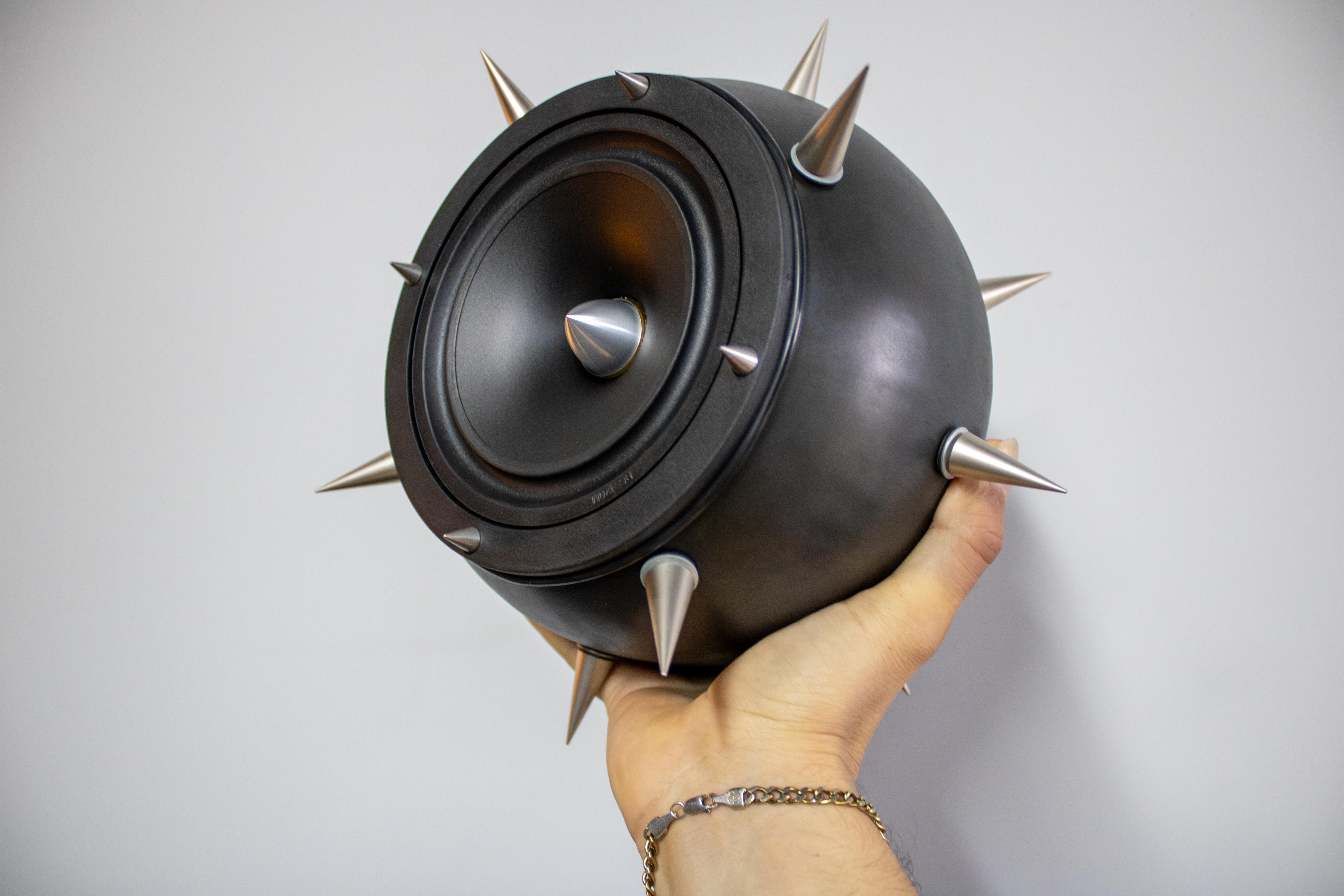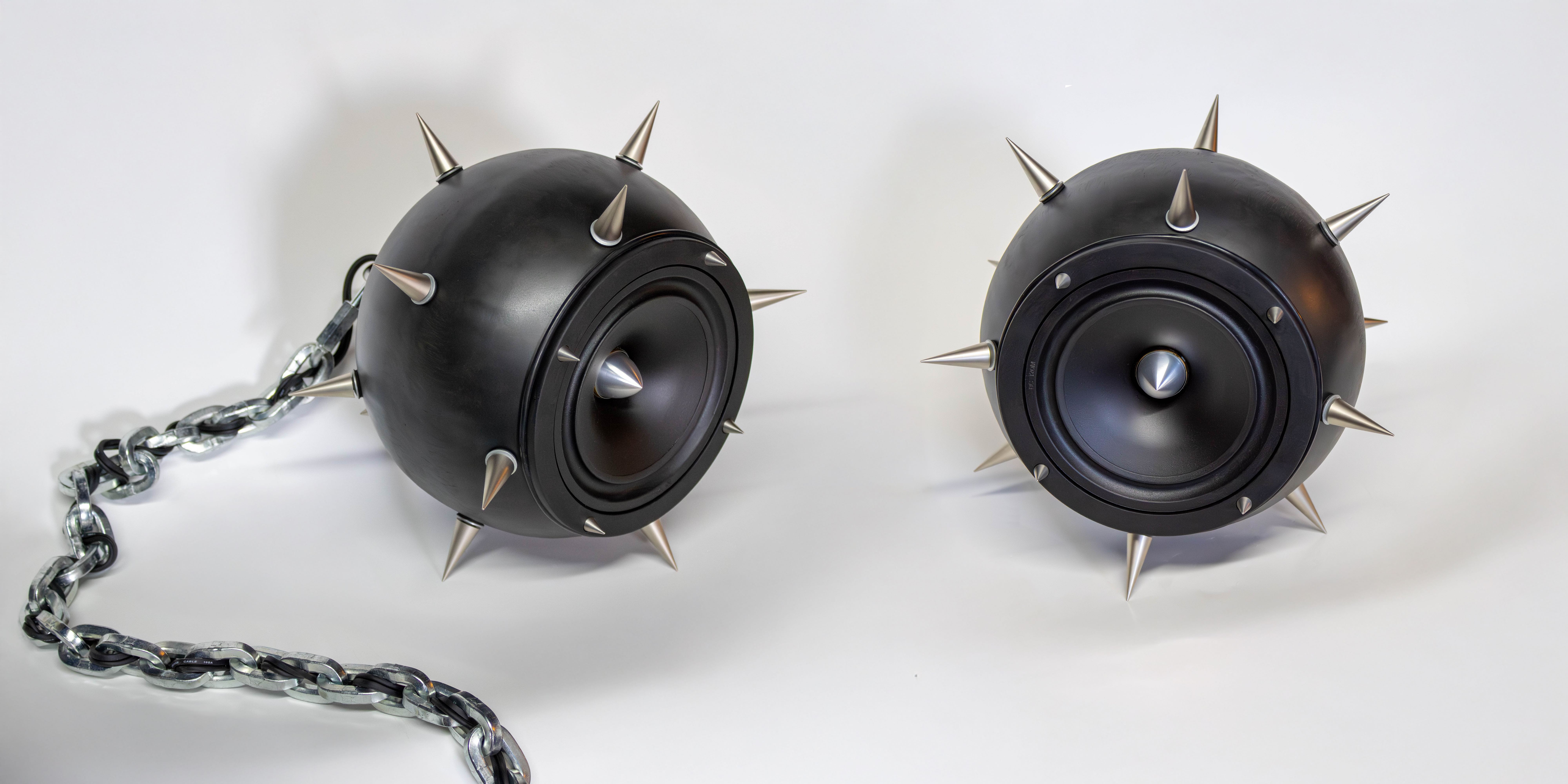 The Morningstar Speaker design was inspired by a technological coincidence bridging hundreds of years of history: the form of a Morningstar (a medieval spiked mace weapon) is an acoustically optimal design for a speaker.