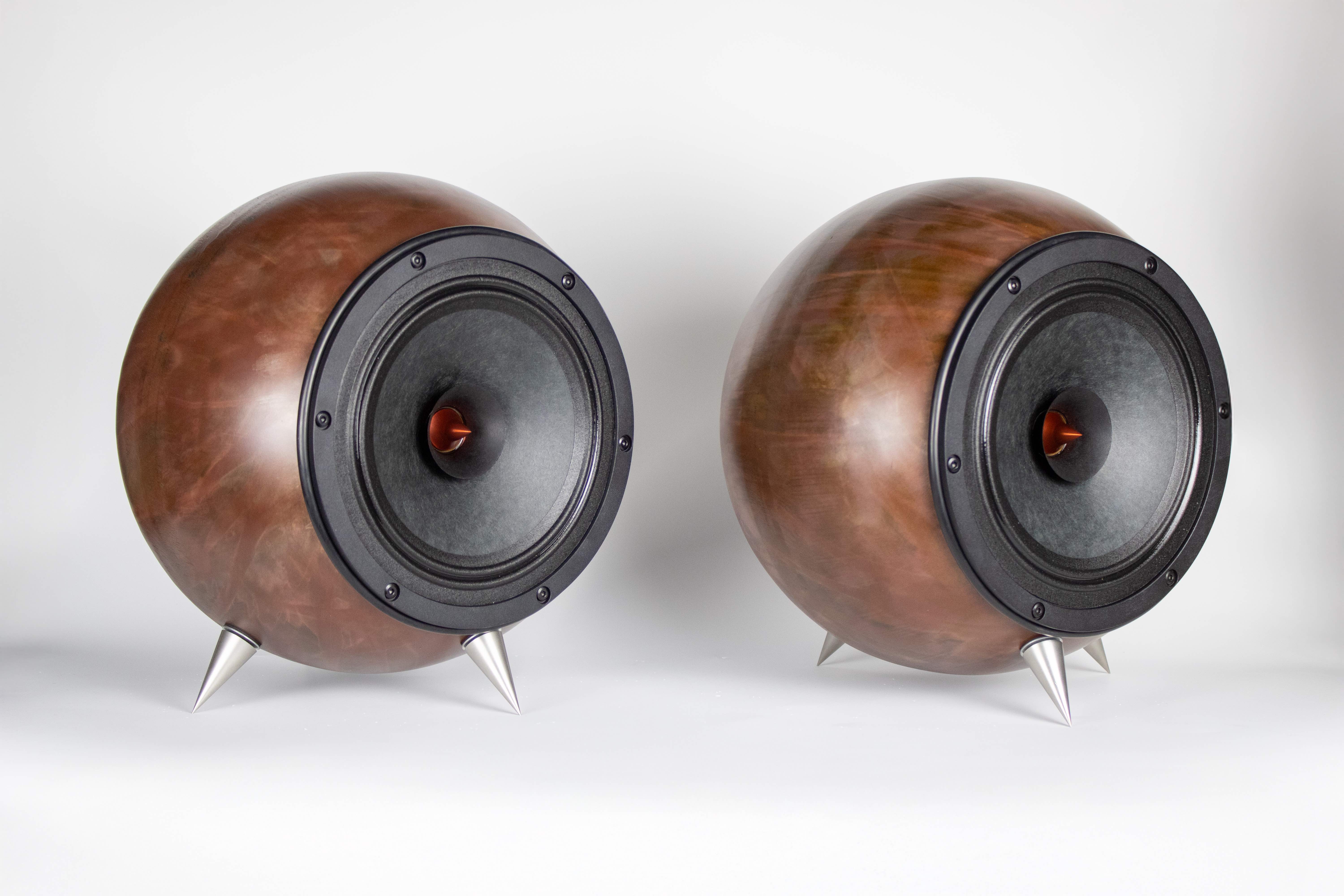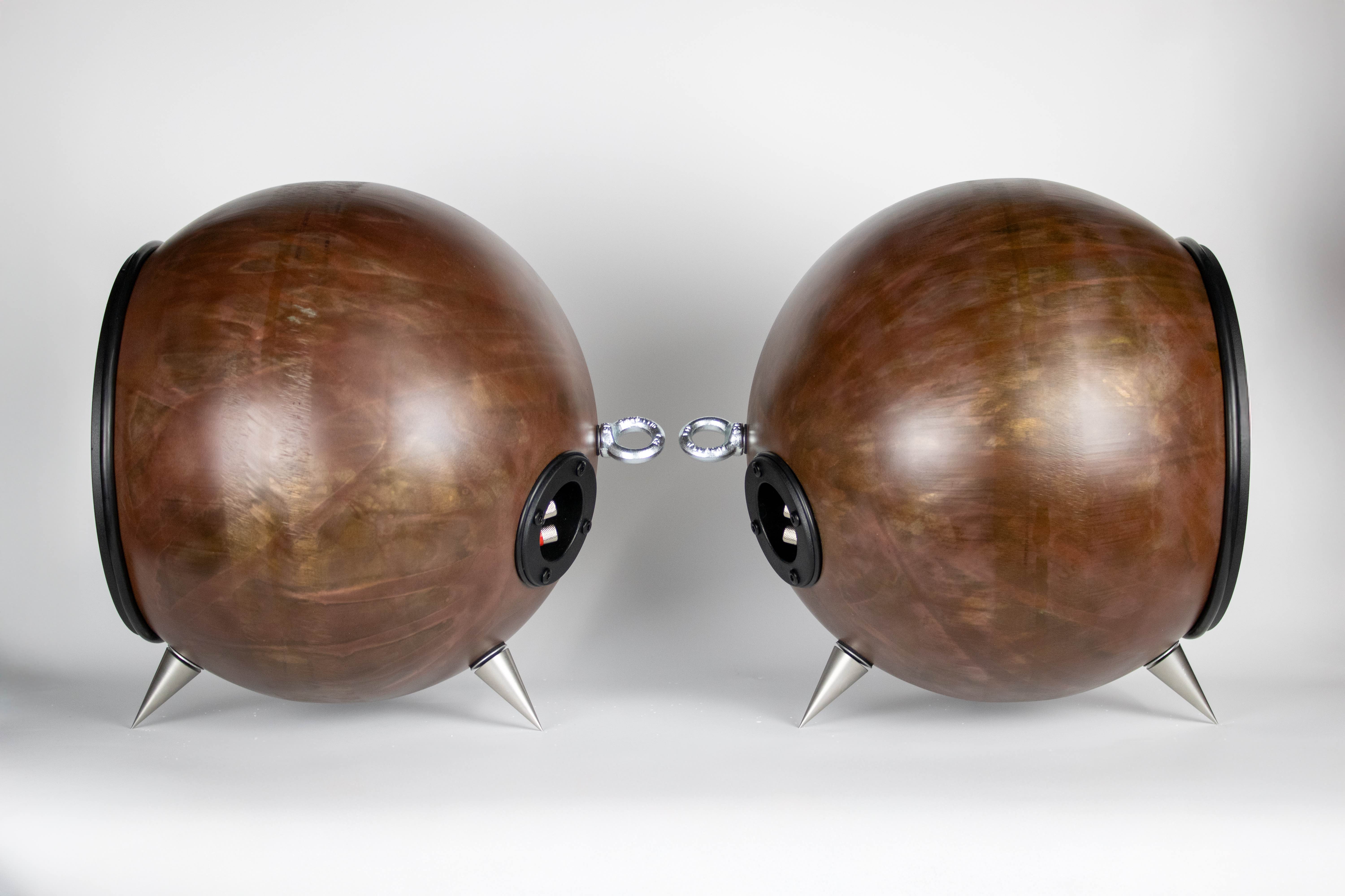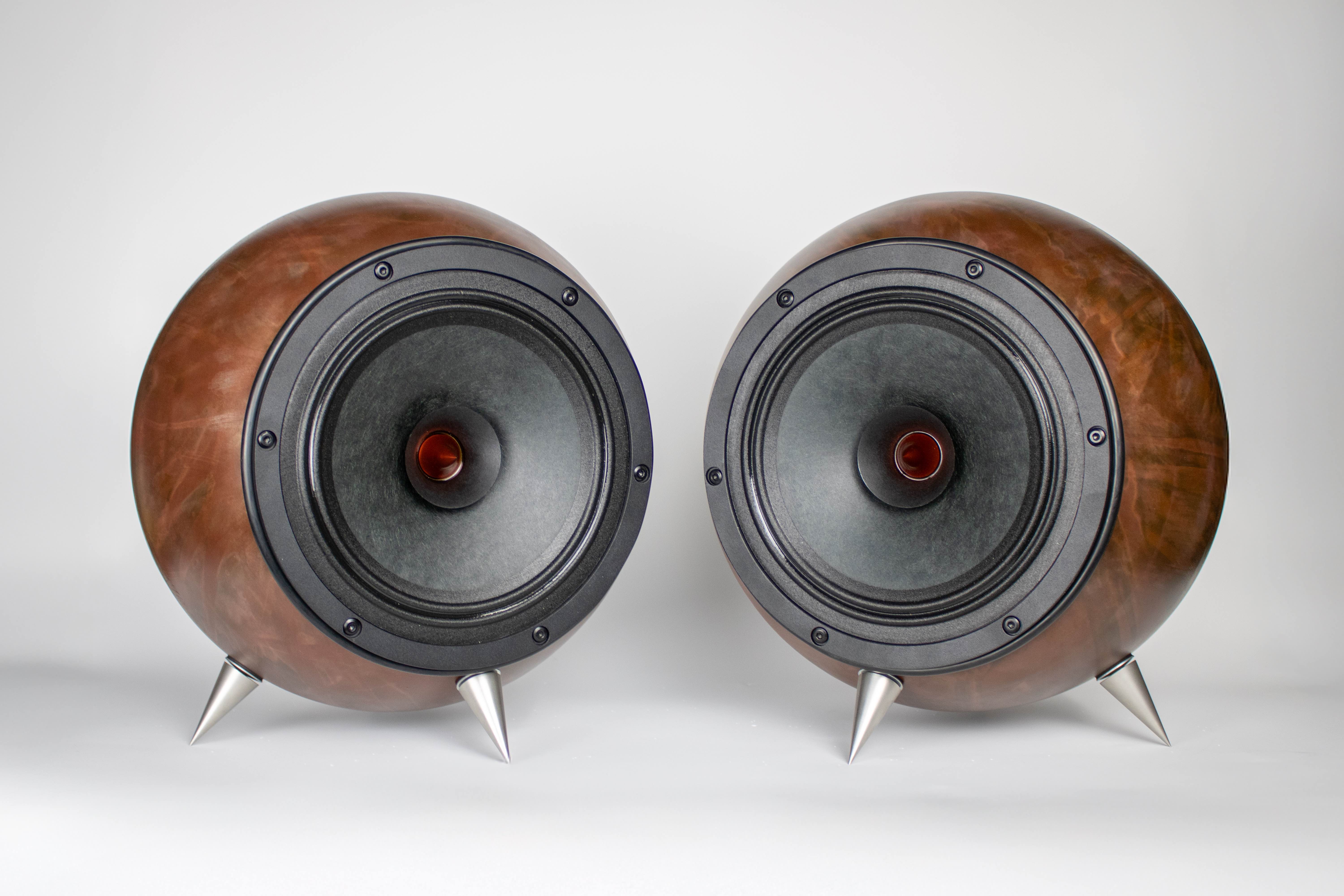 Sound expands spherically, and spherical speaker enclosures are renowned by audiophiles for their even frequency response. Within the enclosure, the spherical walls create a maximally complex path of reflection for sound waves, allowing the speaker to harness the acoustical amplification provided by a hollow cavity while maintaining an even tonality. Outside the enclosure, the curved wall prevents early reflections off of the surface of the speaker, creating a more direct experience of the sound.